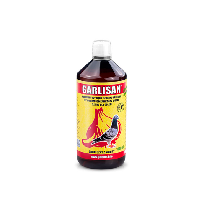 Garlisan Extra Mocny Wyciąg z Czosnku 1L od firmy Patron to skoncentrowany, naturalny preparat dla gołębi, oparty na wysokiej jakości wyciągu z czosnku. Dzięki silnym właściwościom czosnku wspiera odporność, poprawia krążenie, działa oczyszczająco i wspomaga trawienie. Regularne stosowanie wpływa na lepszą kondycję lotową, zdrowie układu oddechowego oraz naturalną ochronę przed infekcjami.