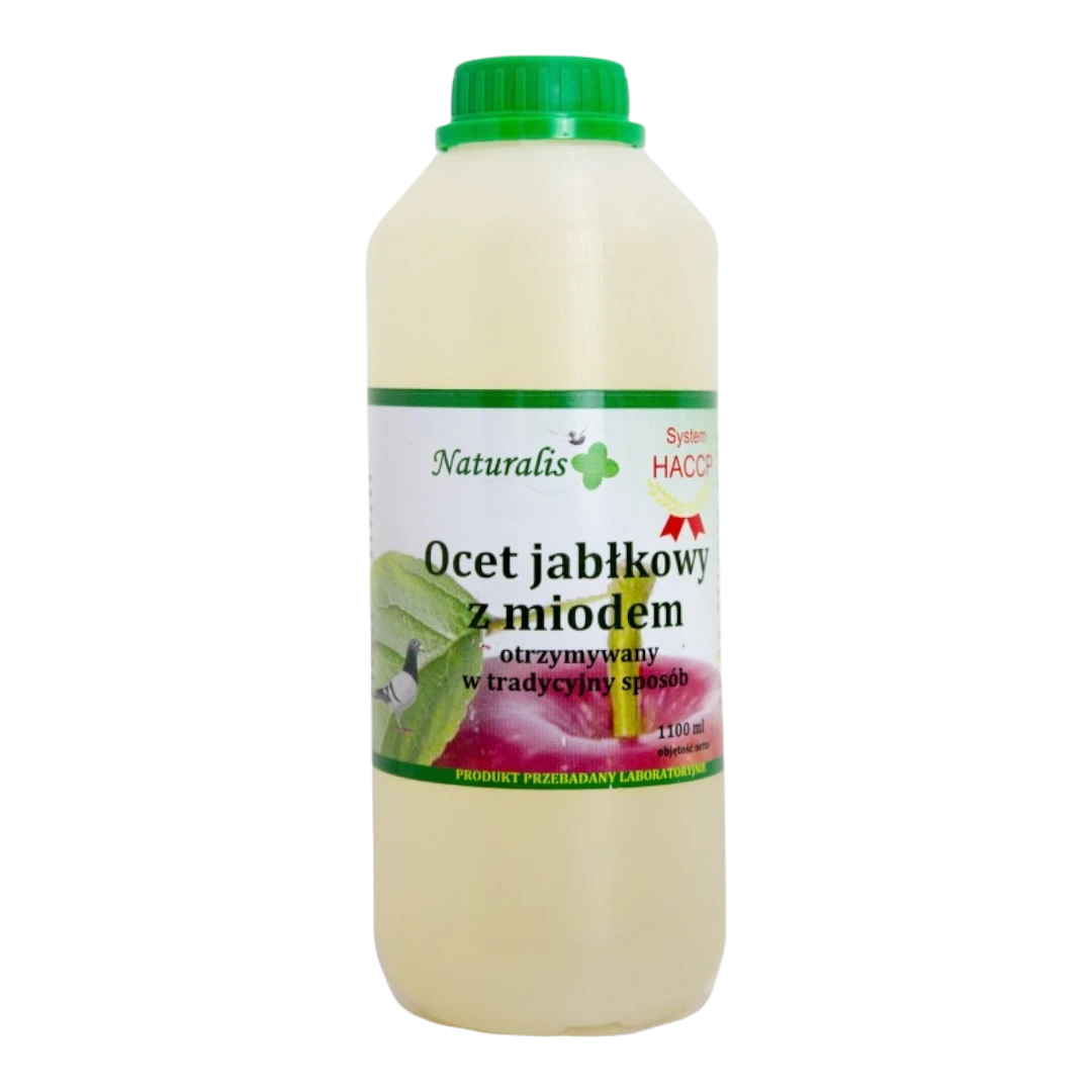 Naturalny preparat wspierający odporność i zdrowie gołębi. Ocet jabłkowy z miodem ma silne działanie zakwaszające, co chroni przed namnażaniem pasożytów w układzie pokarmowym. Dodatkowo poprawia produkcję czerwonych krwinek, odświeża krew i wspiera dotlenienie mięśni, a także nadaje się do dezynfekcji poideł i wody do kąpieli.
