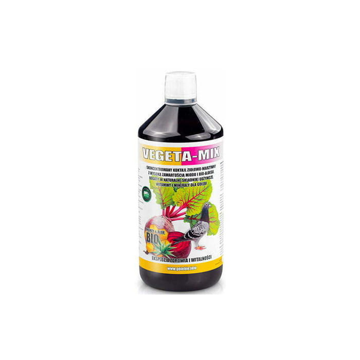 Vegeta-Mix to unikalny "koktajl zdrowia" dla gołębi, łączący moc 19 naturalnych ekstraktów z warzyw i ziół (m.in. burak, marchew, czosnek, tymianek) z dodatkiem biodostępnego aloesu i miodu. Preparat ten działa wielokierunkowo: oczyszcza krew z toksyn, przywraca równowagę w jelitach i poprawia wchłanianie witamin. Dzięki zawartości aloesu zwiększa elastyczność mięśni i stawów, co jest kluczowe w sezonie lotowym.